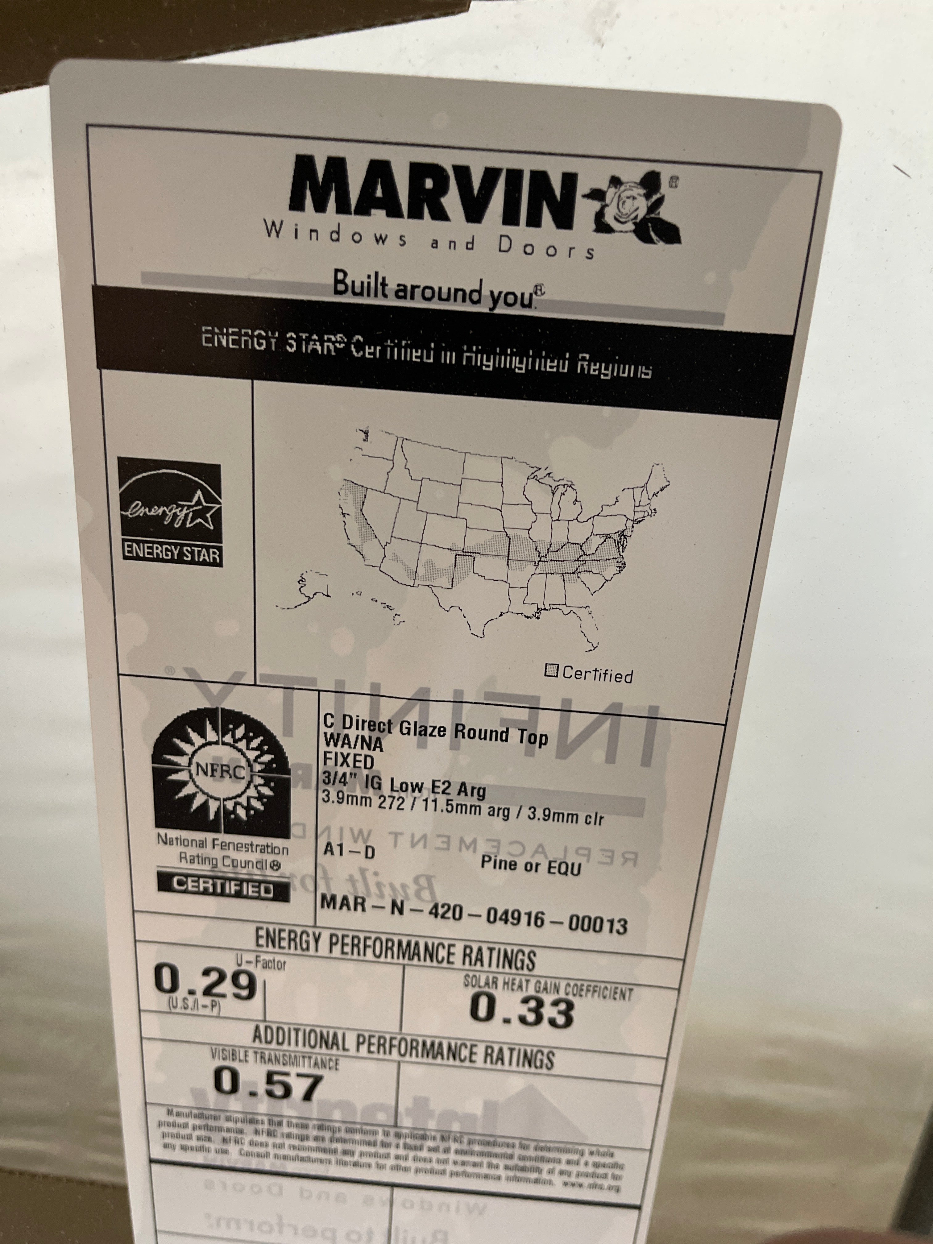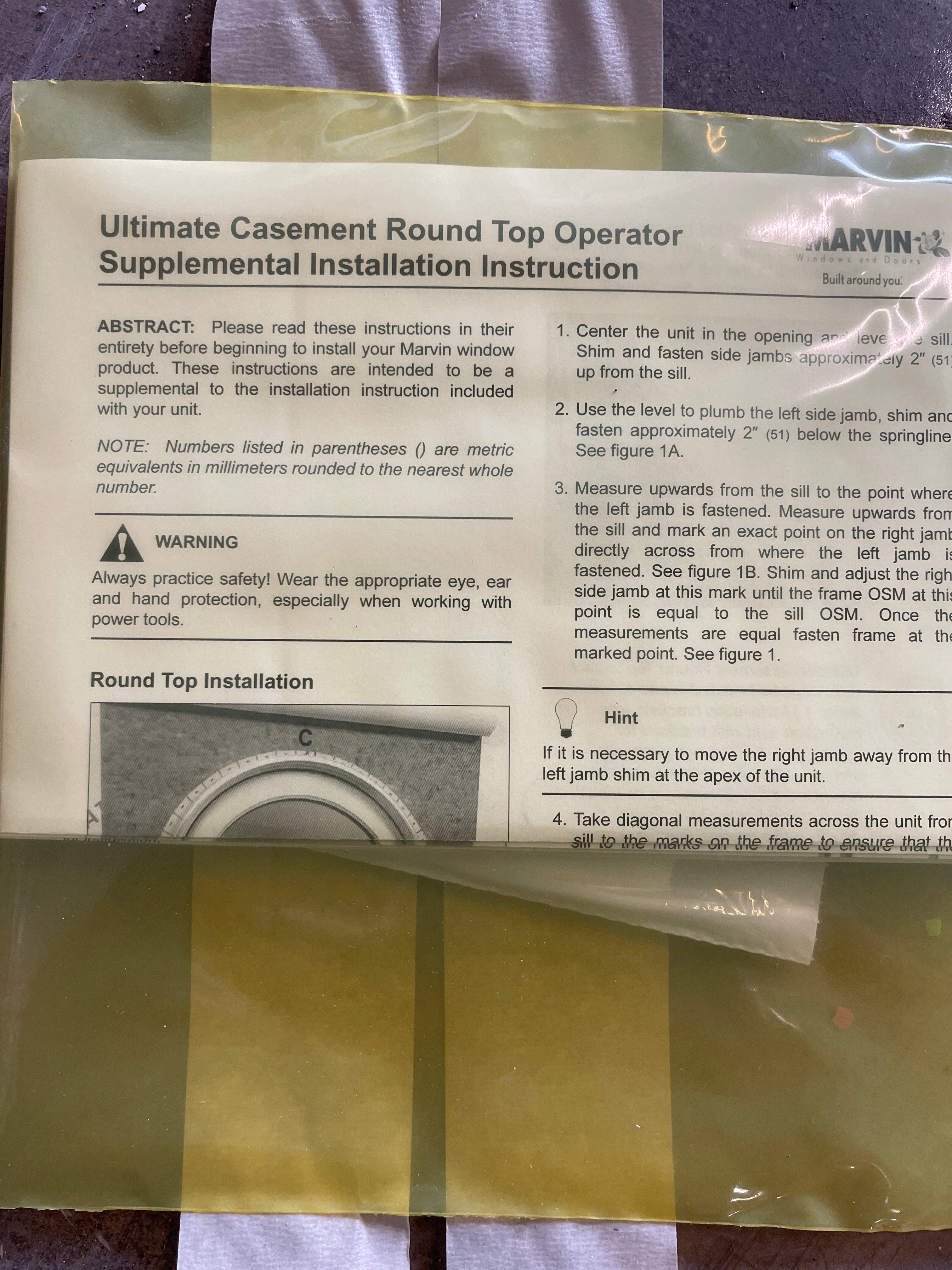 86”w x 21”h Marvin Ultimate Casement Round Top Window