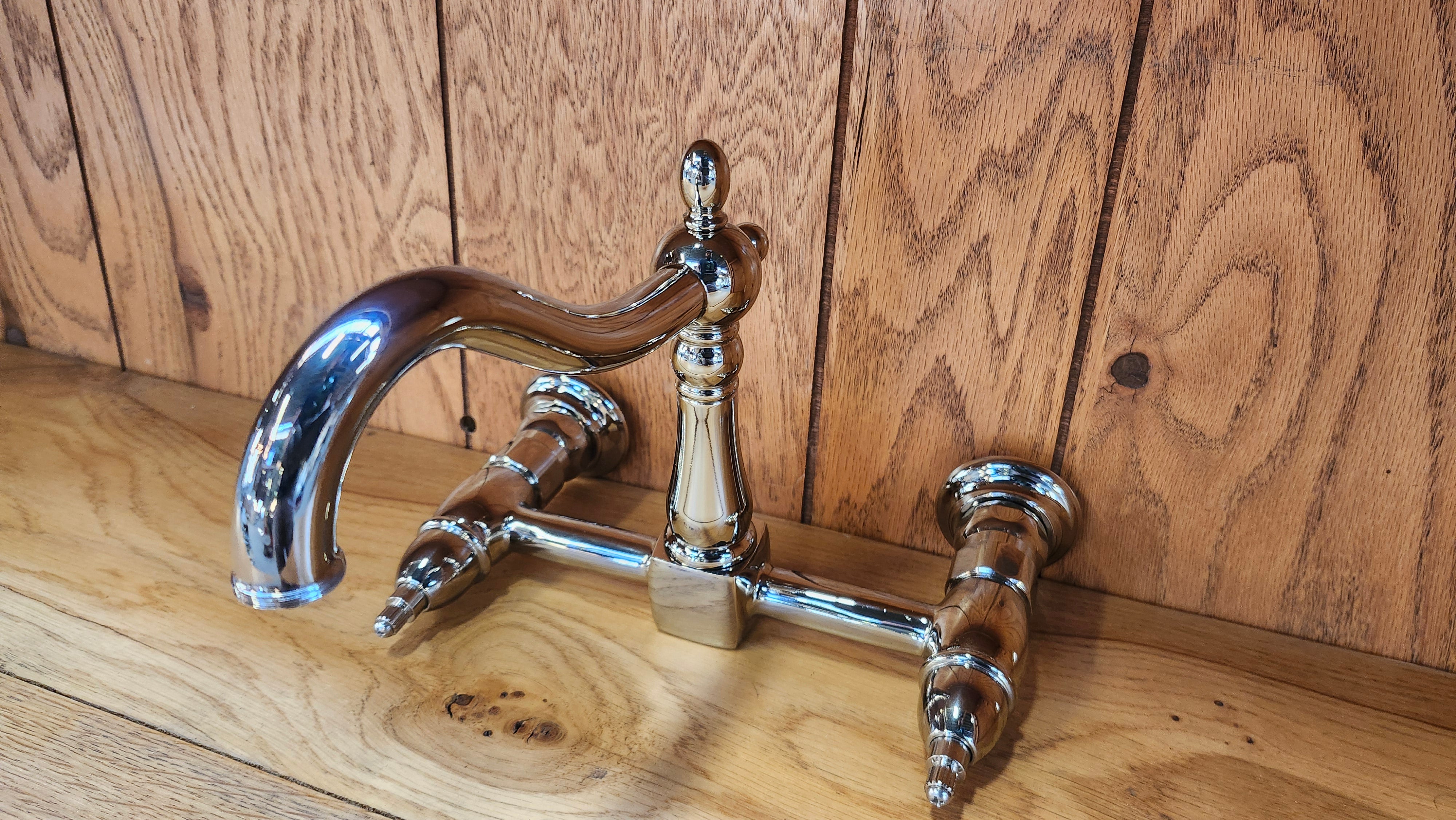 Kingston Brass Double-Handle 2-Hole Wall-Mount Bridge Kitchen Faucet, Polished Chrome